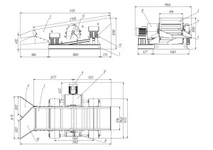 • Вибропитатель: используется для подачи сыпучего и кускового материала от приемных бункеров на системы дробления, транспортирования или сортировки. Исходное сырьё, в качестве которого могут быть уголь, песок, щебень, агломерат, окатыши и другие сыпучие материалы, подаётся на вибрационный питатель с помощью бункера.