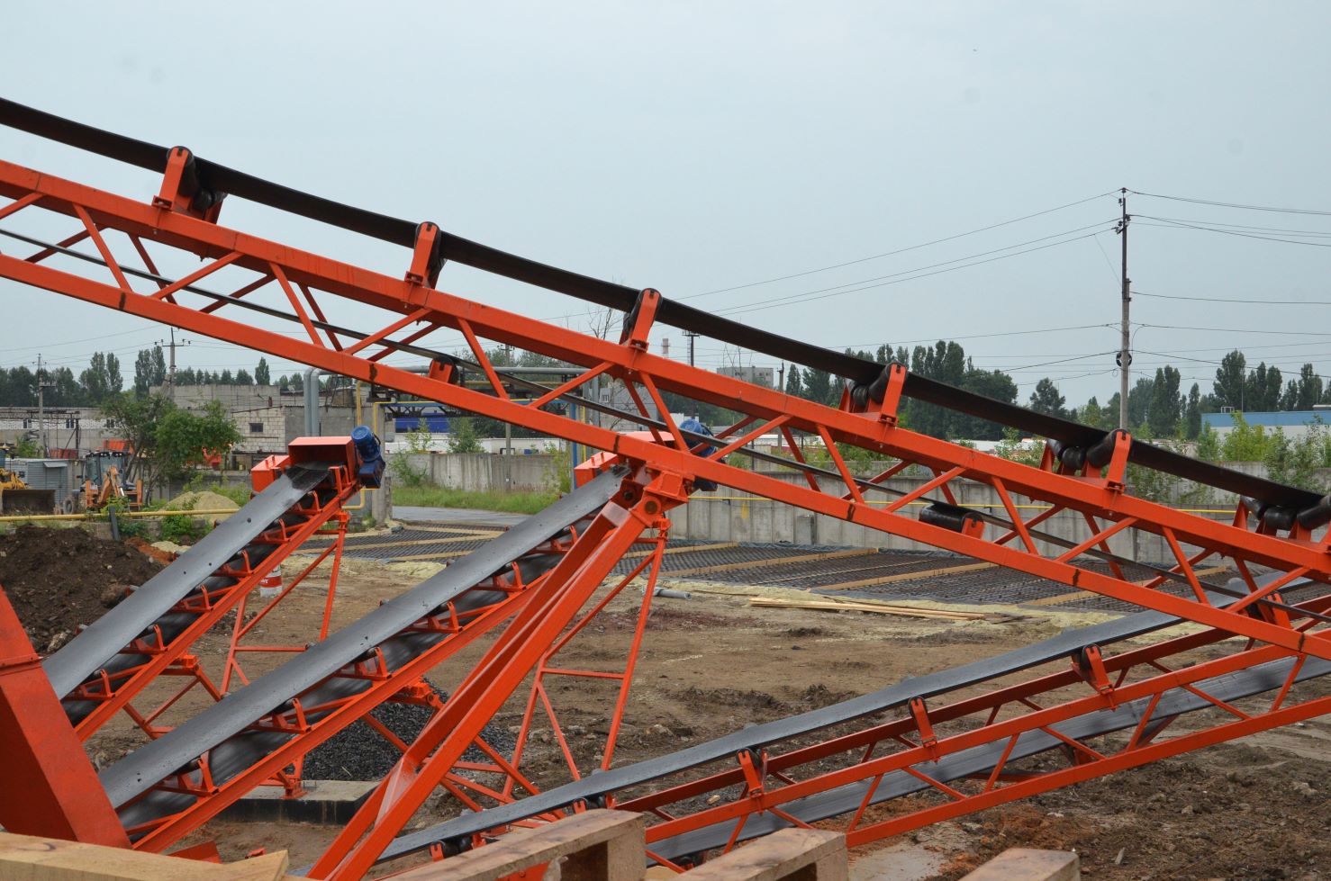 Измельченный материал для товарной классификации подается с помощью двух параллельных ленточных конвейеров на инерционный грохот.