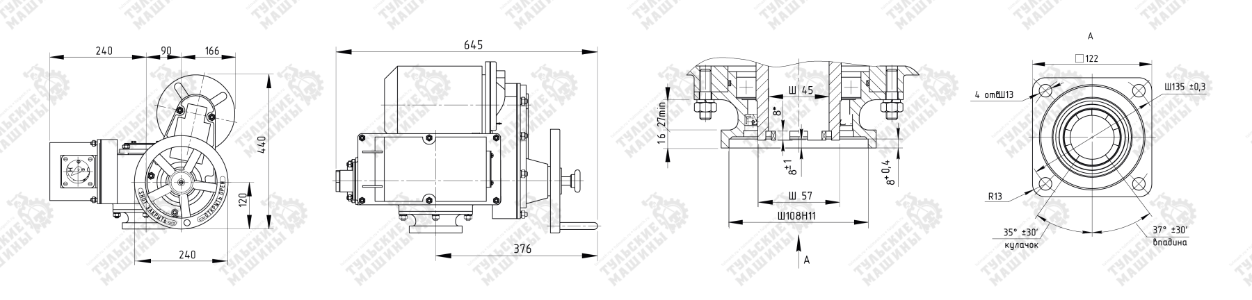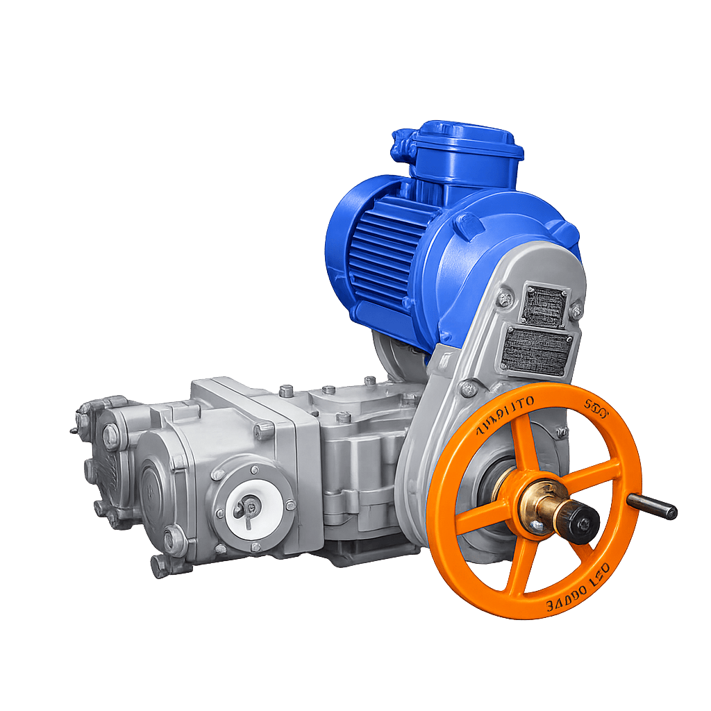 Электропривод ВБ взрывозащищенного исполнения с червячно-цилиндрическим редуктором и двухсторонней муфтой. |