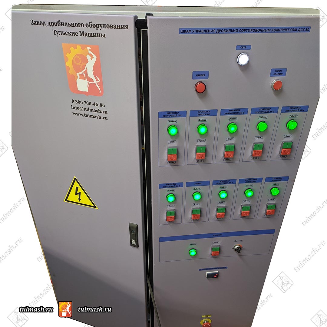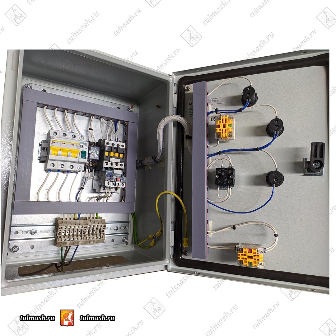 Щит управления конвейером изготавливается из листовой стали, что защищает силовое оборудование от механических повреждений. Монтаж производится на монтажных панелях корпуса. Для фиксации кабелей предусмотрены специальные зажимы на нижней стенке щита.