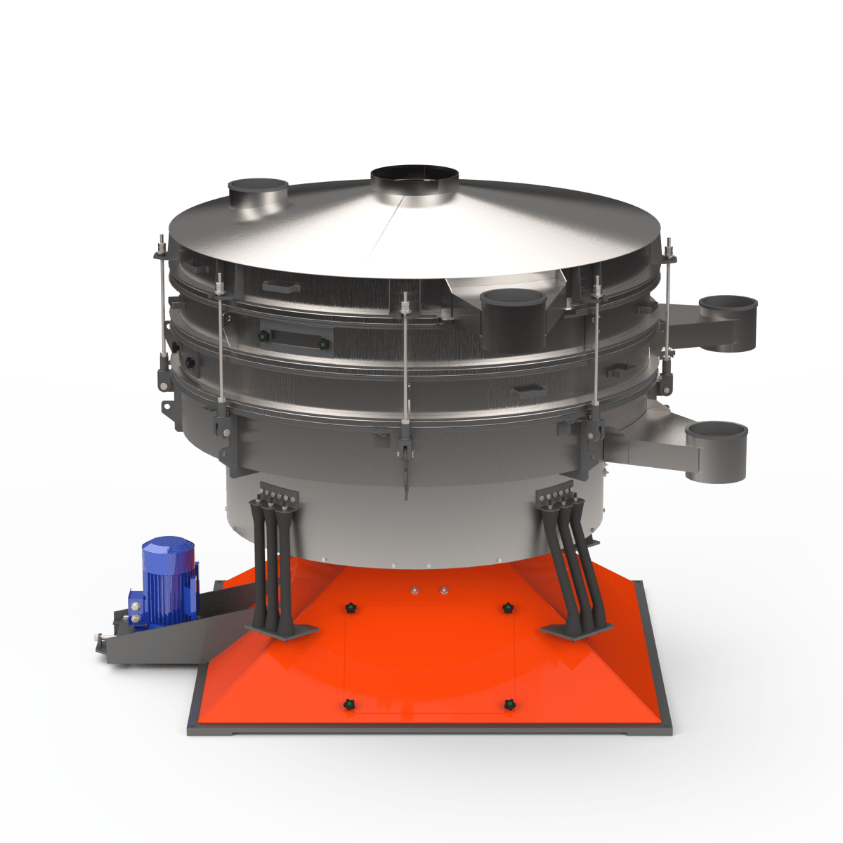 Грохот качающийся с тремя ситами из нержавеющей стали — это высокоэффективное оборудование для многоступенчатого рассева и сортировки сыпучих материалов на четыре фракции за один технологический цикл. Качающиеся (круговые) колебания корпуса обеспечивают равномерное распределение материала по всем ситам, высокую точность классификации и стабильную работу в непрерывном режиме.