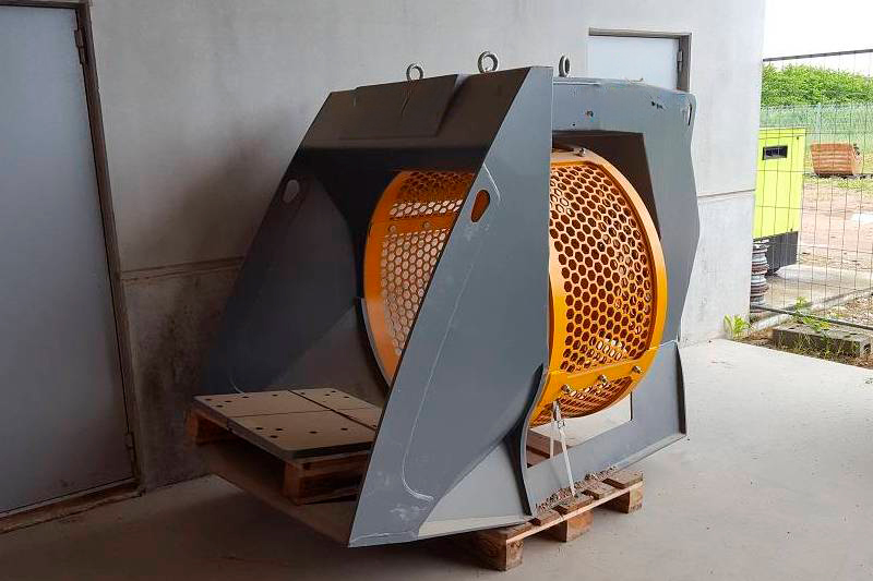 Разборная конструкция барабана позволяет быстро заменить сито и настроить ковш под необходимый размер фракции.