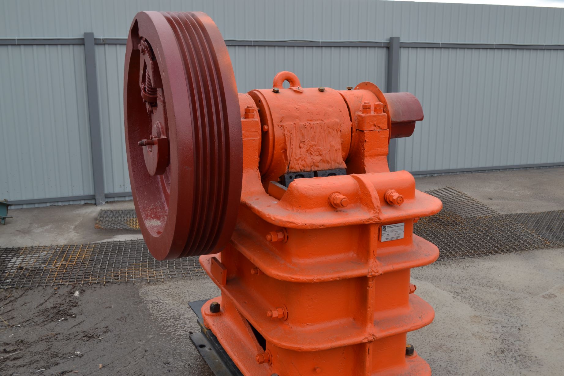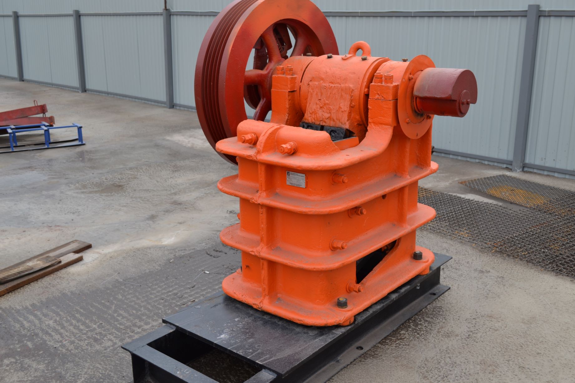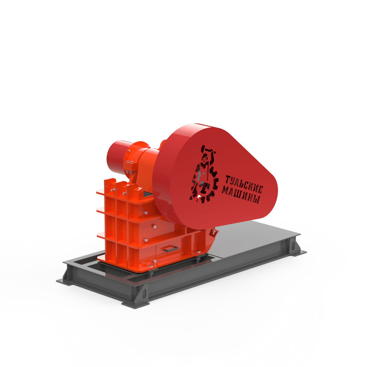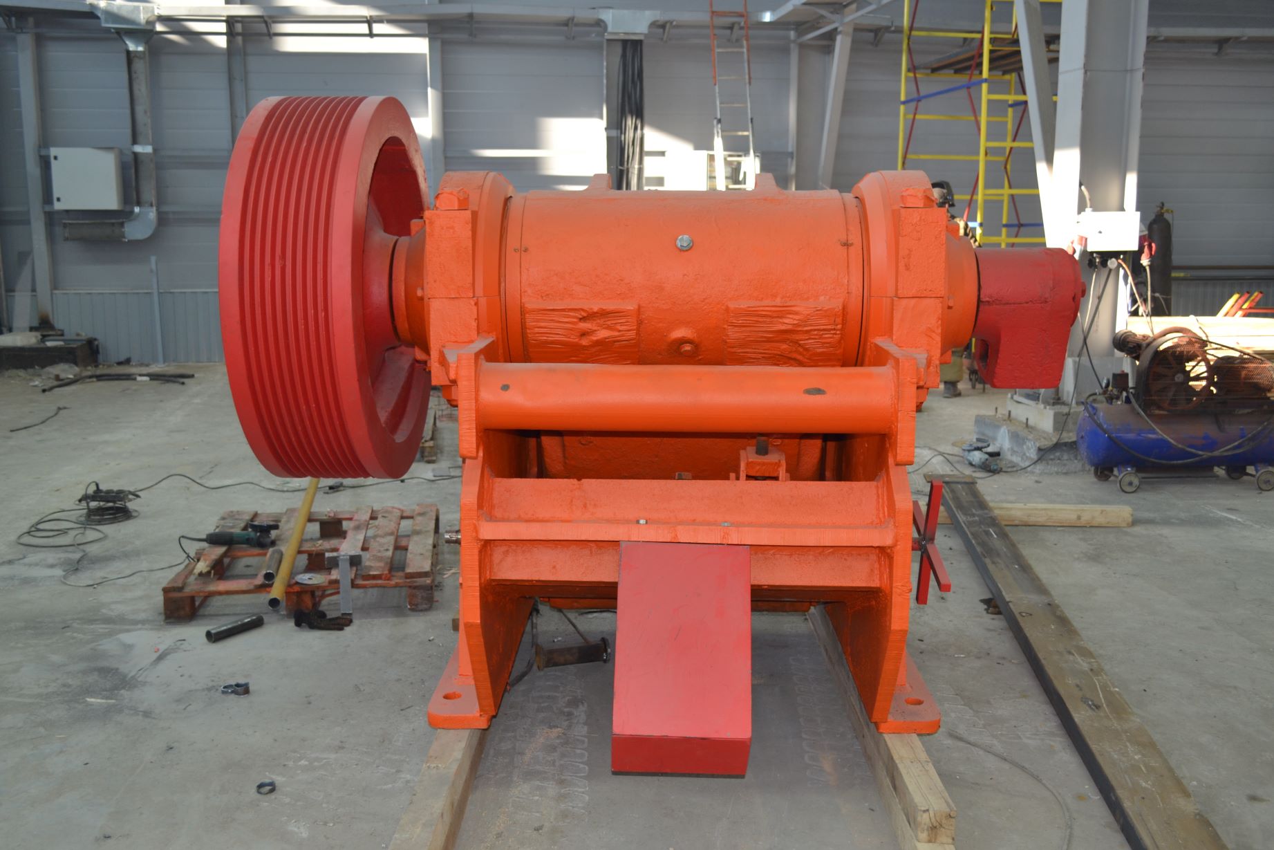 Дробилка состоит из корпуса, на котором смонтирована подвижная щека с двигающейся дробящей плитой, валом и подшипниками. На передней стенке корпуса закреплена неподвижная дробящая плита.
