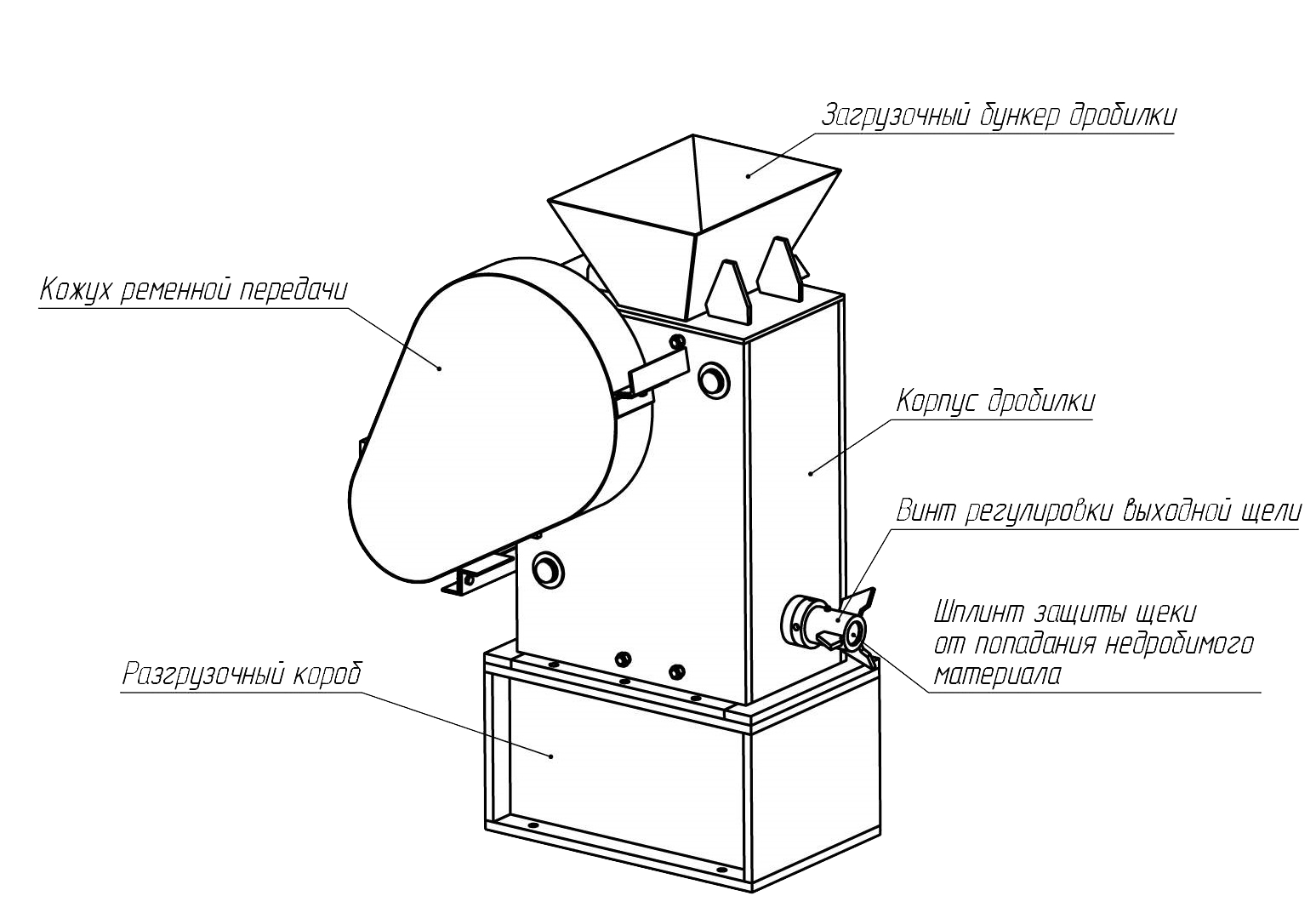 Простая регулировка крупности готового материала (щель от 3 до 25 мм).