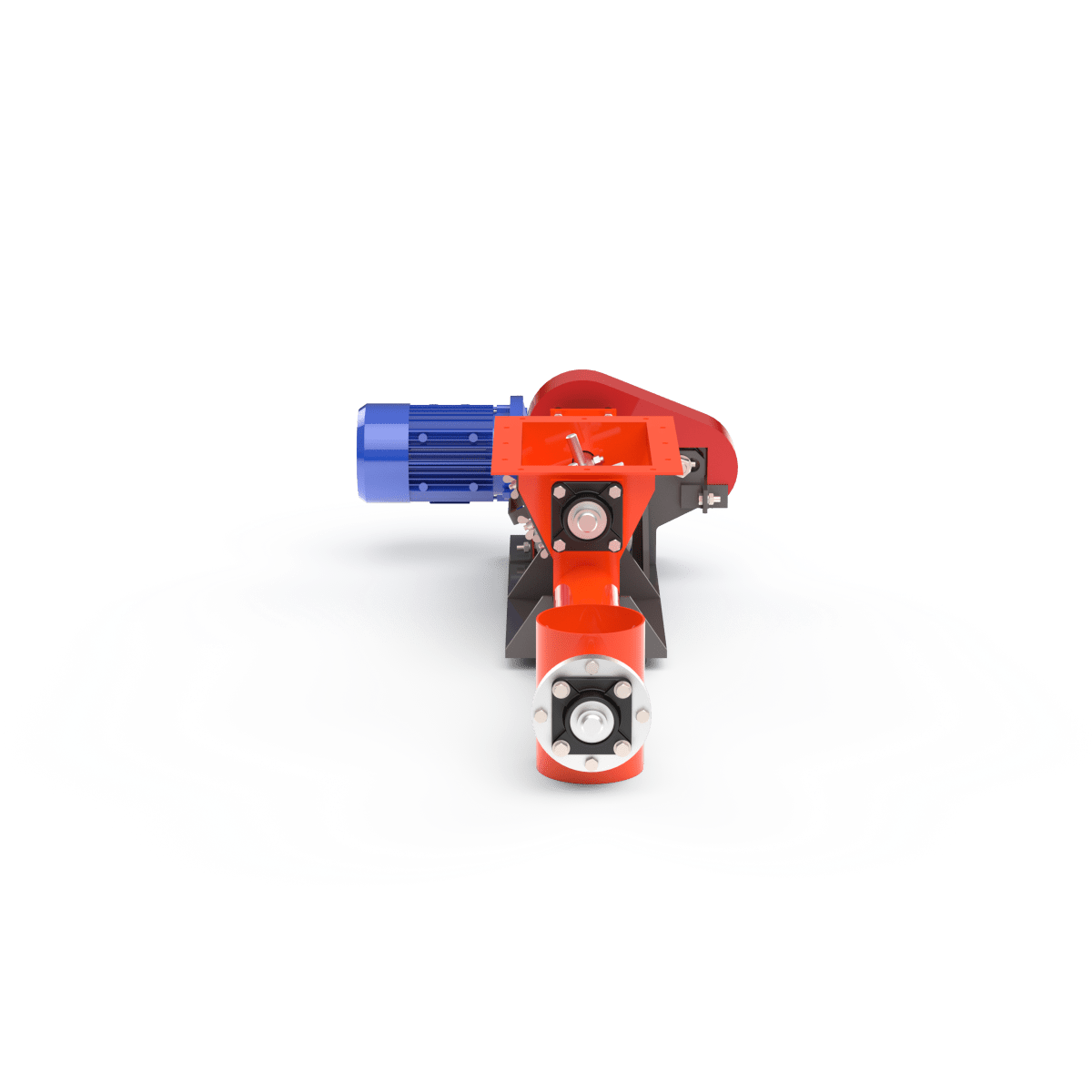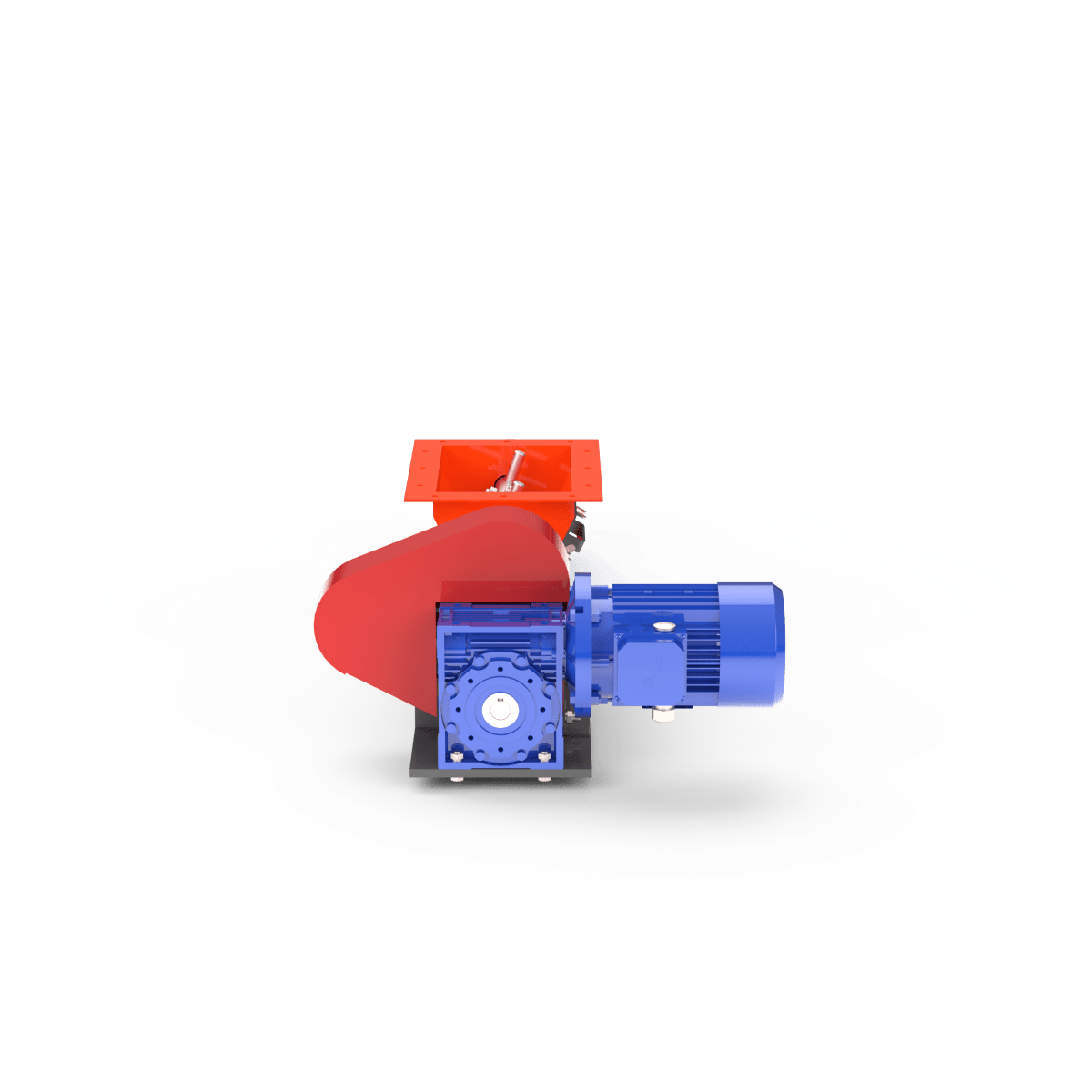 Подача осуществляется с помощью вращающегося шнека, обеспечивающего стабильный поток материала с заданной производительностью.