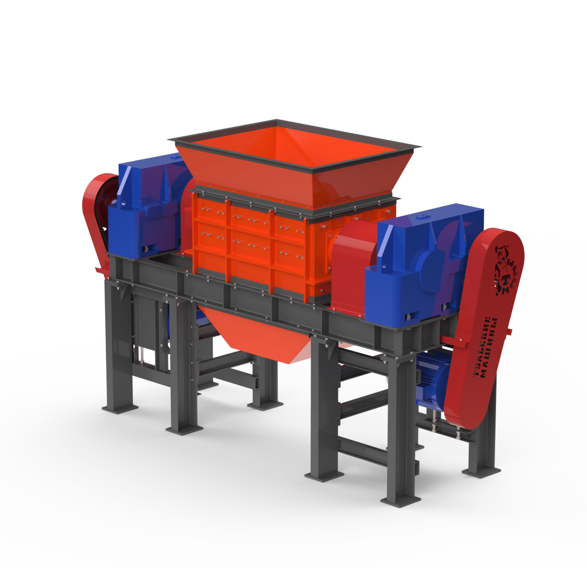 Двухвальный шредер ШД-430 предназначен для измельчения крупногабаритных отходов с высокой производительностью — до 3 т/ч. Конструкция обеспечивает эффективную переработку материалов с максимальным размером кусков до 400 мм, выдавая на выходе фракцию до 30 мм (в зависимости от требований заказчика). Оборудование может работать как автономно, так и в составе технологической линии, устанавливается на опорных площадках или фундаментах.