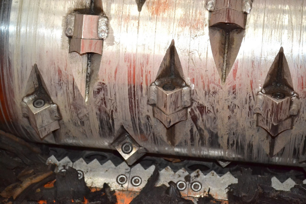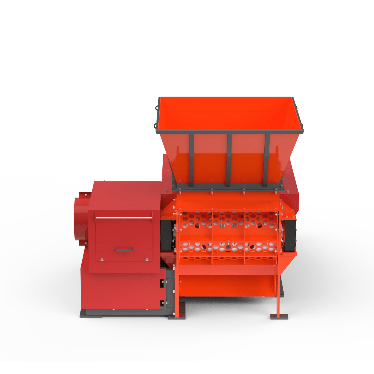 Материал загружается в приёмный бункер вручную или механизировано. Гидравлический подпрессовщик прижимает его к ротору с ножами, обеспечивая равномерное измельчение. Ротор диаметром 430 мм и длиной 850 мм установлен в подшипниковых корпусах и приводится в движение электродвигателем через редуктор и ременную передачу.