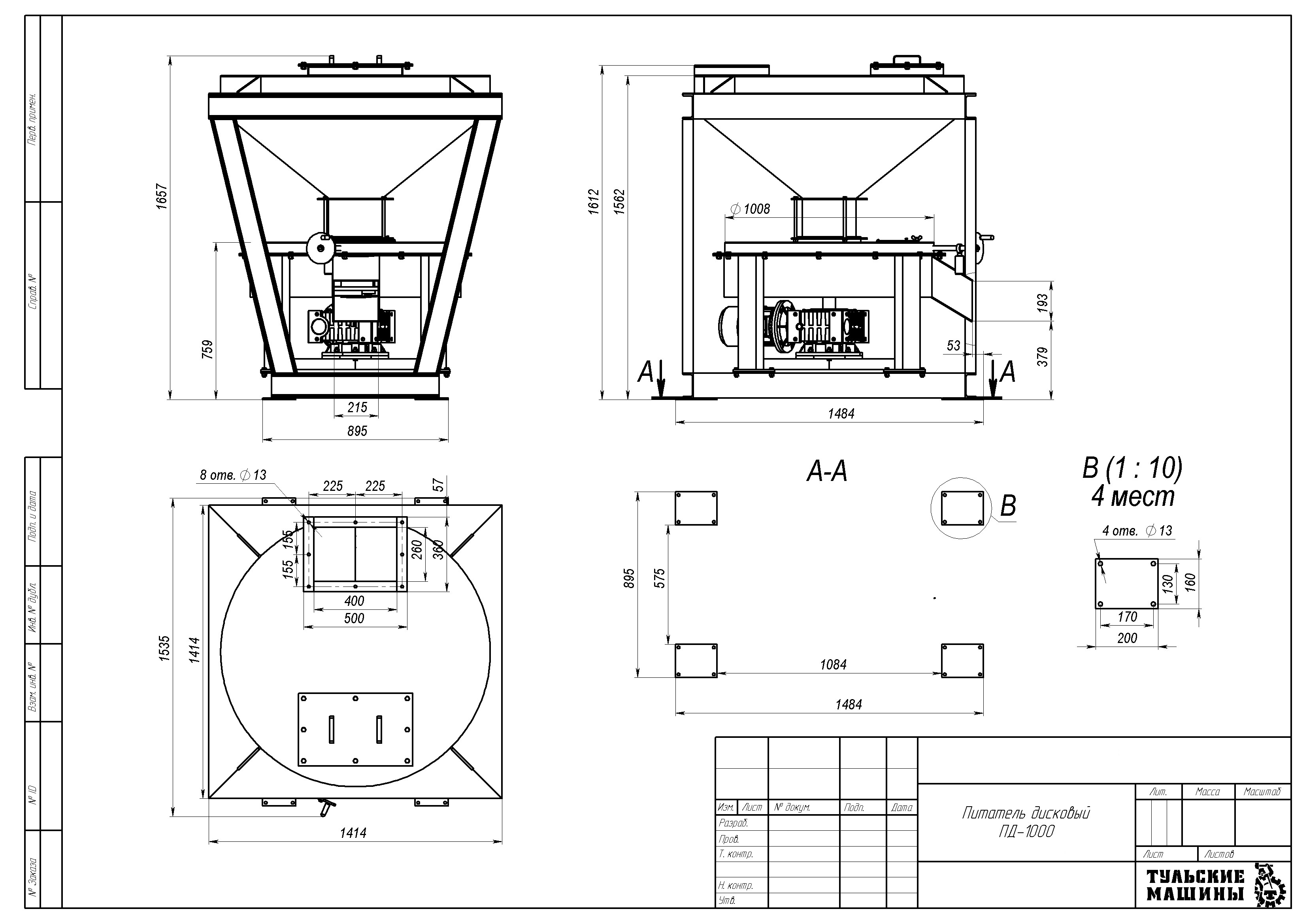 ЧЕРТЕЖ — Дисковый питатель ПД-1000