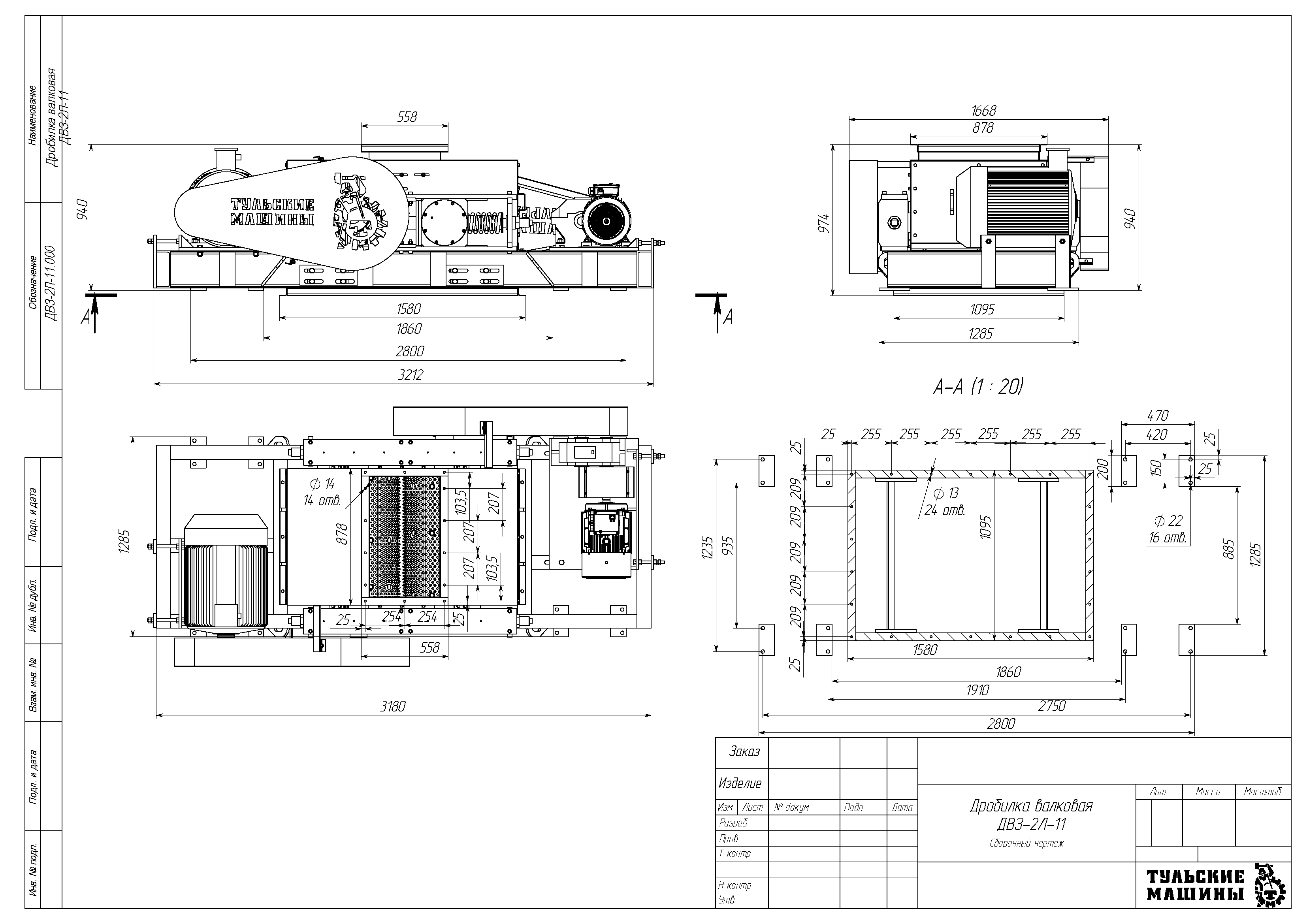 Дробилка с зубчатыми валками ДВЗ-2Л-11 предназначена для дробления кусковых материалов низкой и средней прочности (70-120 МПа (700-1200 кгс/см²)) с влажностью до 25%. Дробилка может применяться в линиях и дробильных комплексах как первая или вторая ступени дробления габаритных кусков материала.