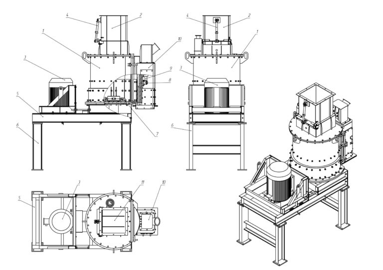 Вертикальная компоновка позволяет рационально использовать производственное пространство, а простая и надёжная конструкция обеспечивает стабильную работу в непрерывном режиме. Оборудование хорошо подходит для задач, где требуется дробление без переизмельчения и с минимальным пылеобразованием.