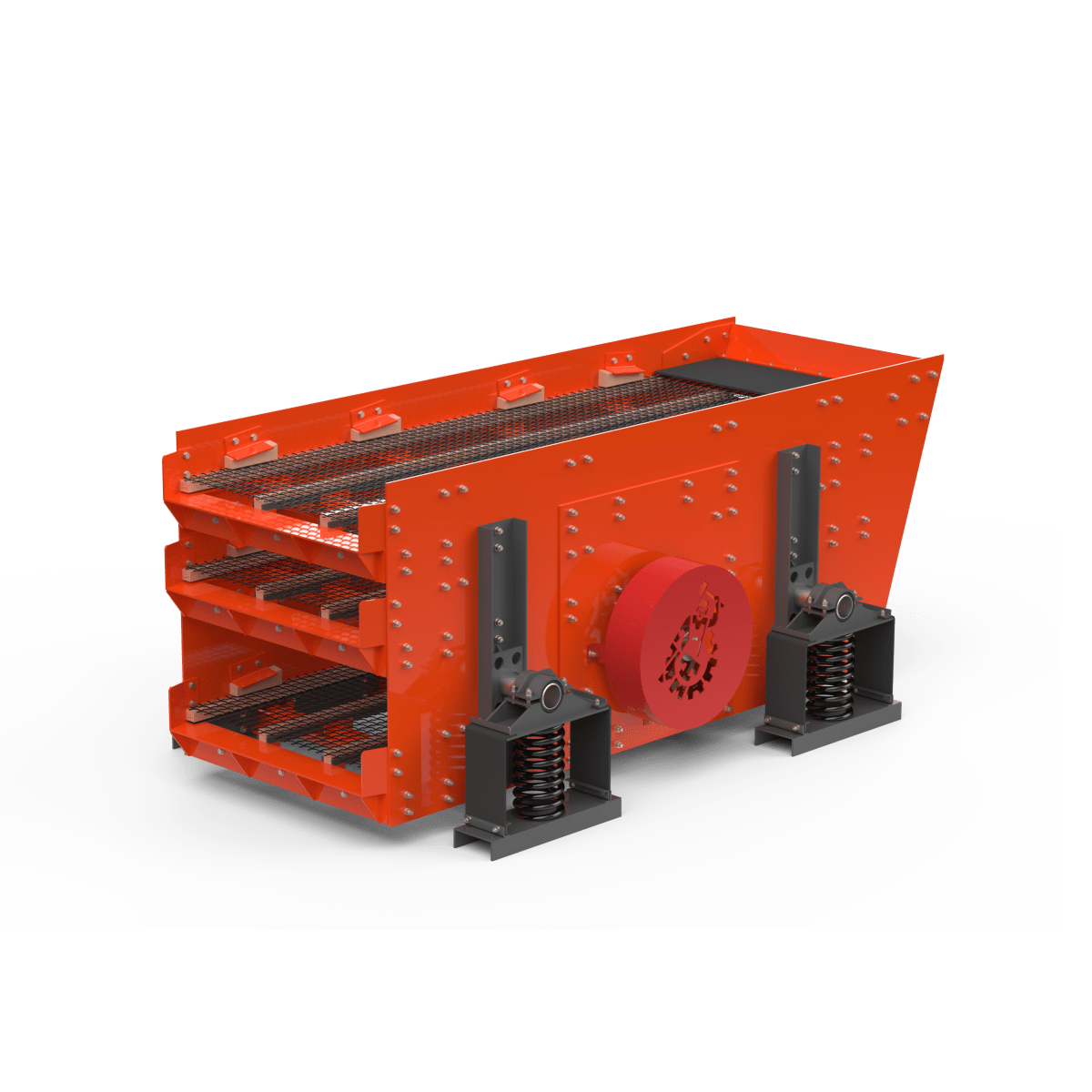Принцип работы основан на создании круговых колебаний короба за счёт центробежной силы от вращающихся дебалансов. Материал подаётся на верхнюю деку, после чего под действием вибраций и уклона сит перемещается к разгрузке, разделяясь на фракции в зависимости от размеров ячеек. Более мелкие частицы проходят через сита и попадают в подрешетные бункеры, а более крупные продолжают движение по ситу.