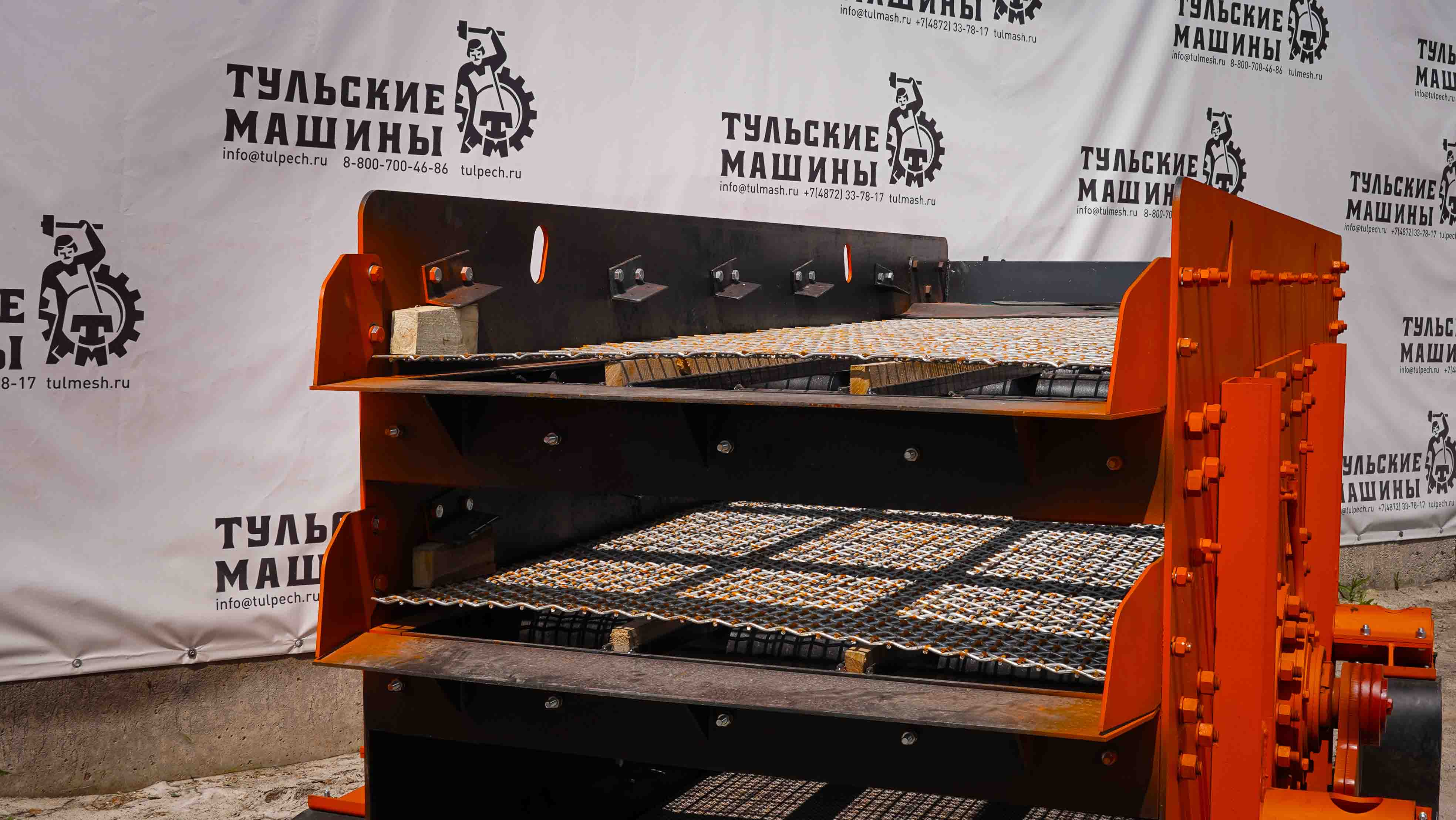 - Трёхъярусная конструкция просеивающей поверхности позволяет одновременно получать несколько фракций.