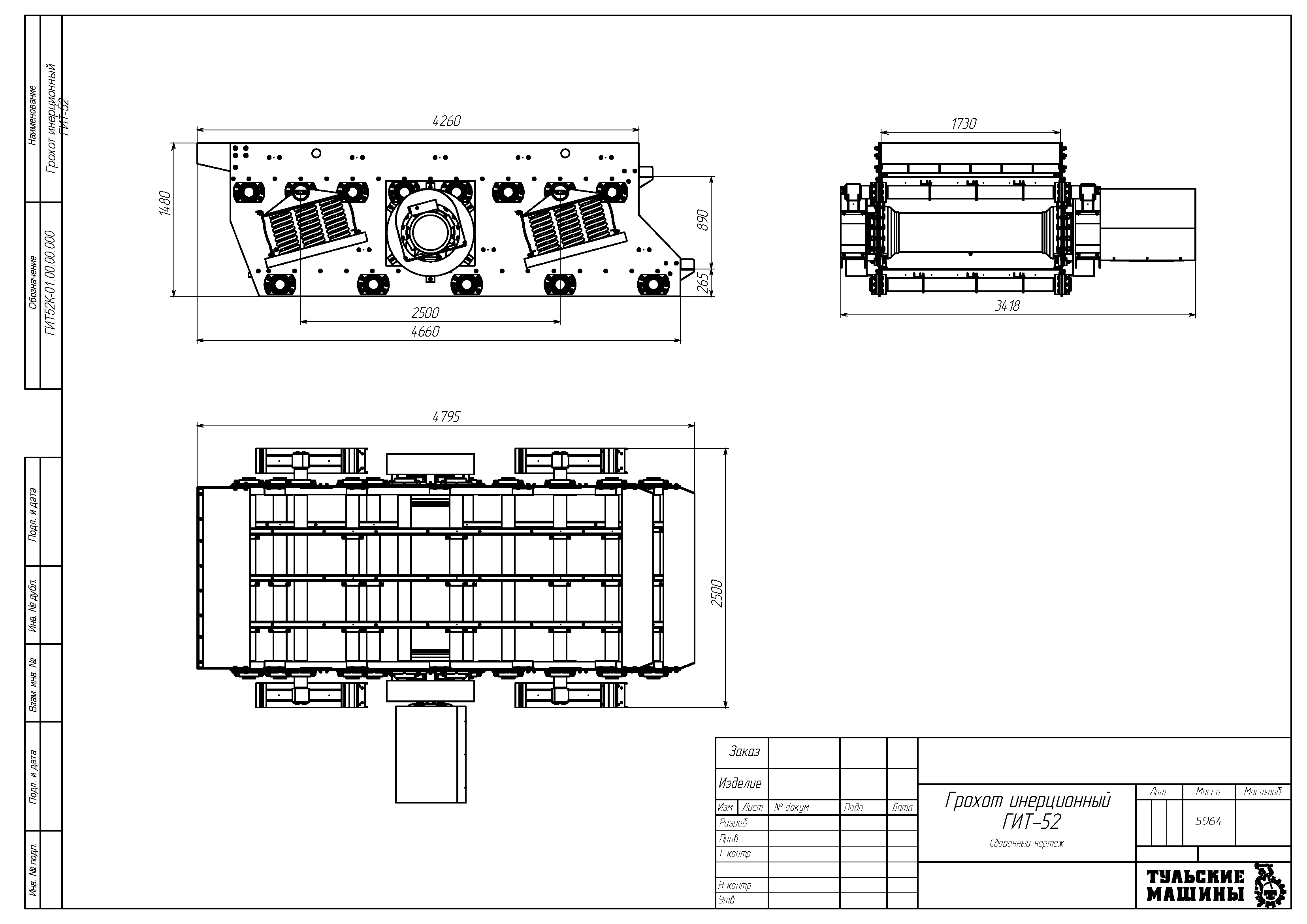 ГИТ-52 — это мощный инерционный грохот с двухъярусной просеивающей поверхностью, предназначенный для сухой сортировки сыпучих материалов крупностью до 300 мм. Он применяется для разделения строительных и нерудных материалов по фракциям при влажности до 5%. Устройство эффективно обрабатывает до 200 м³/ч материала, обеспечивая стабильную работу в тяжёлых производственных условиях.