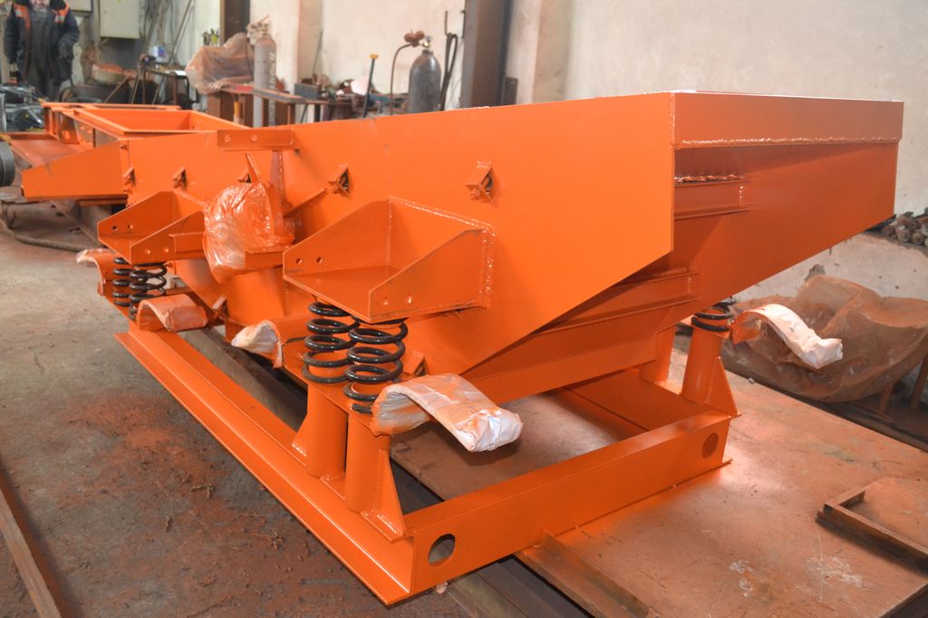 Грохот работает следующим образом: из загрузочного бункера материал для рассева подается на верхнее сито. Оказываясь там, он доставляется в сторону наклона короба. Материал, крупность которого меньше отверстий в сетке, просыпается на нижнее сито, а более крупный доходит до края сита и по желобу ссыпается в приемную емкость. Прошедший через отверстие первого сита материал рассеивается на следующем сите на два вида крупности и т.д. Самый мелкий материал попадает в приемную емкость, находящуюся под выгрузным отверстием.