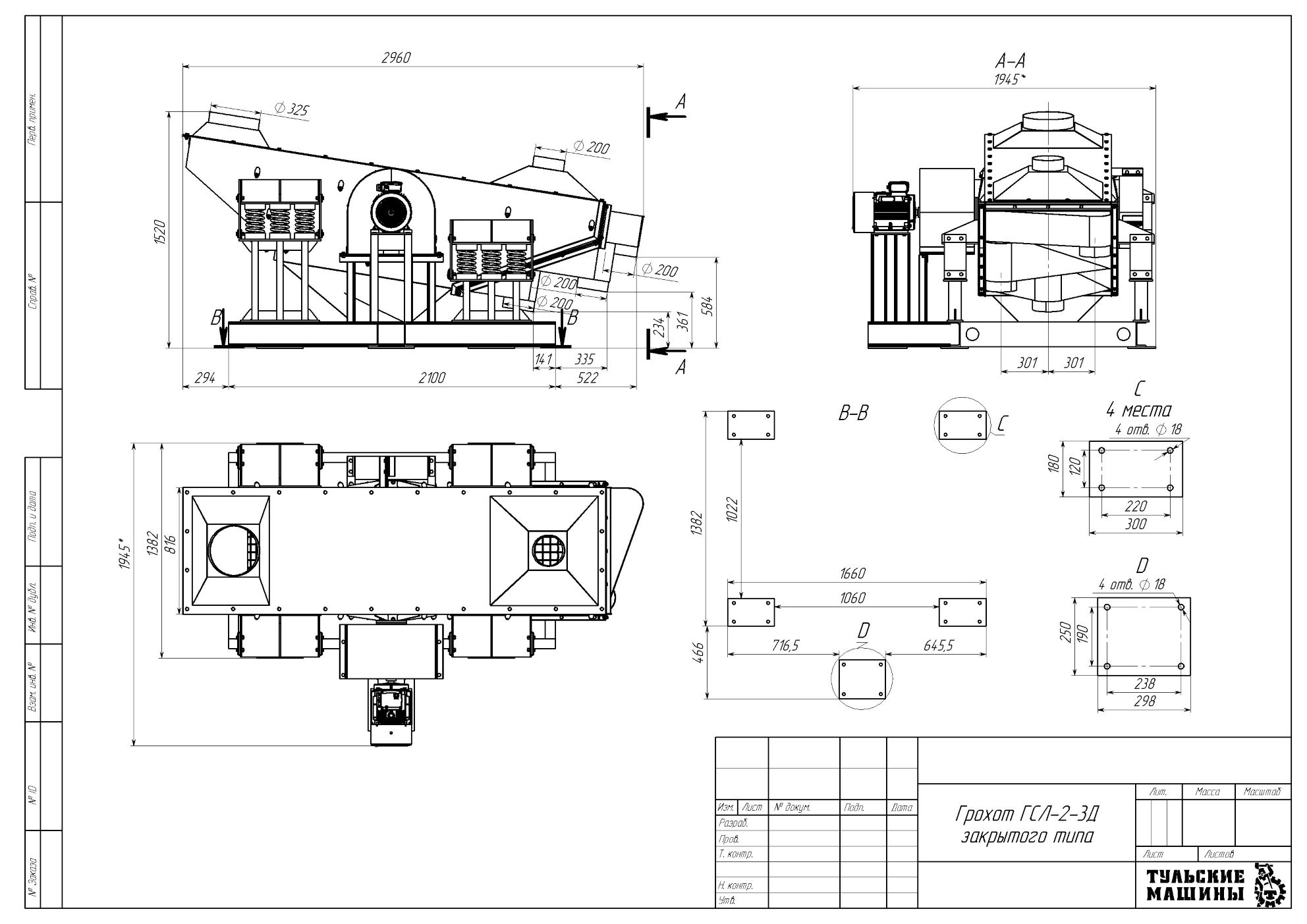 ЧЕРТЕЖ — Грохот инерционный закрытого типа ГСЛ-2-3Д
