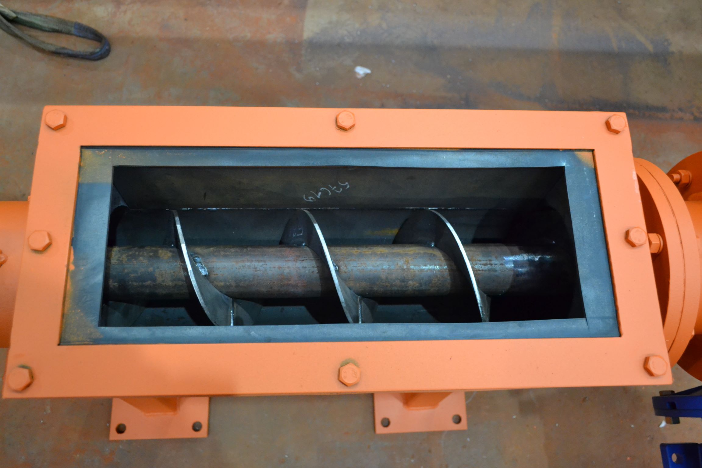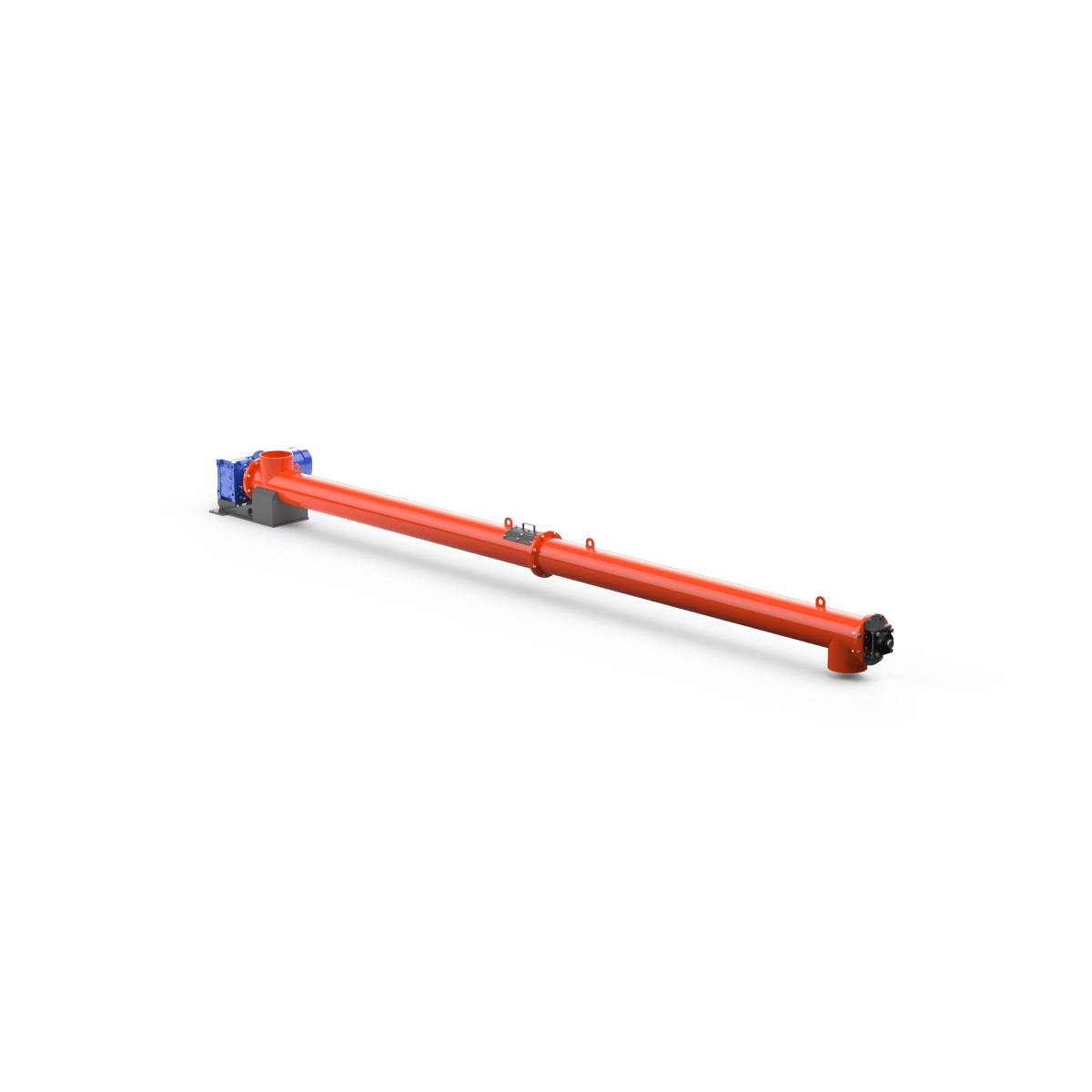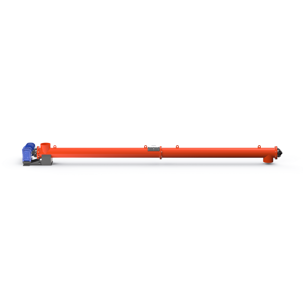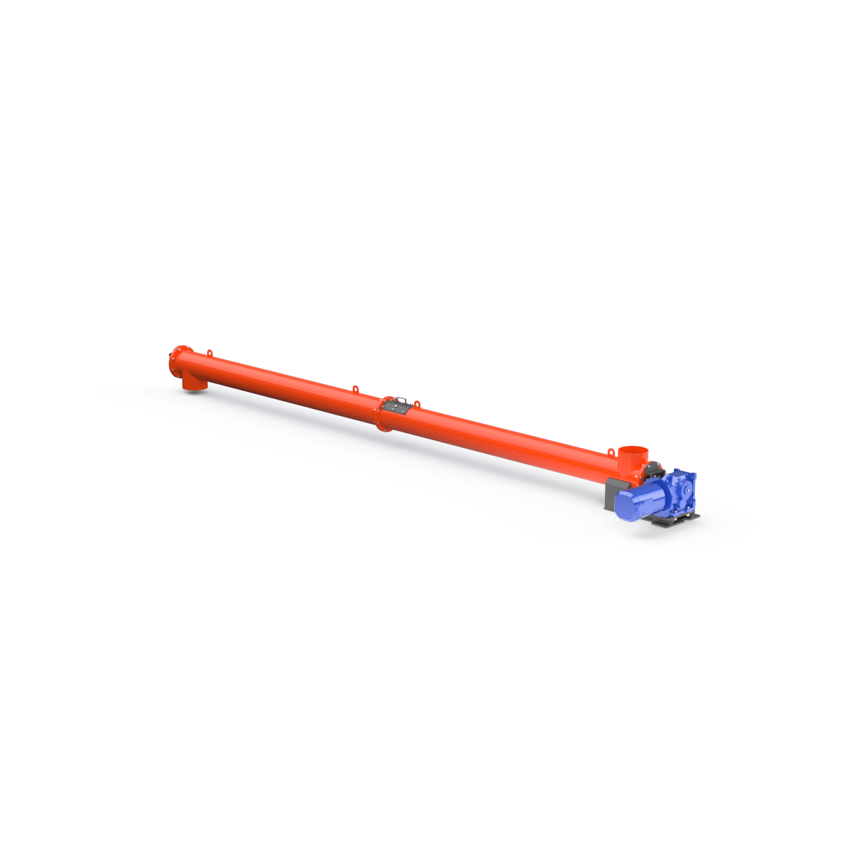Корпус шнека выполнен из углеродистой стали с порошковой окраской внешней стороны. Горловины шнеков могут быть как жёстко приварены к основному корпусу, так и могут быть выполнены с возможностью регулировки угла наклона. Для упрощения монтажа конструкции на корпусе предусмотрены строповочные проушины. Привод шнека соединён с подающим винтом, но возможна установка предохранительной муфты или ремённой передачи. Для шнеков большой длины для поддержки подающего винта устанавливаются промежуточные опоры . Смазка промежуточных опор не требует их демонтажа и осуществляется шприцеванием. Уплотнительные элементы, расположенные на торцевых сторонах корпуса шнека, имеют возможность ручной регулировки. Ресурс концевых подшипников позволяет шнекам работать на протяжении длительного периода времени без ремонта и замены. Наиболее часто используются шнеки диаметром 193, 219, 273 и 323 мм. Для работы с мелкодисперсными продуктами рекомендуется использовать шнековые конвейеры во взрывобезопасном исполнении.