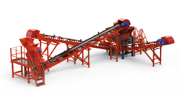 Технологическая линия на базе роторно-дисковых измельчителей, предназначенная для первого этапа измельчения материалов низкой и средней твердости (со степенью прочности до 4 единиц по шкале Мооса). Также используется на производствах кирпича и пенобетона для рециклинга сырья.